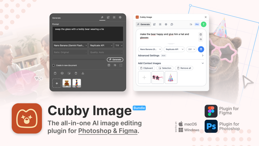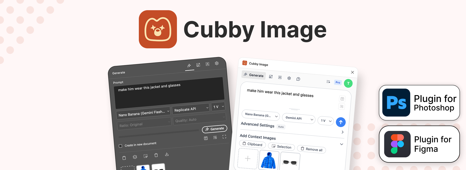 Finally bring state-of-the-art AI image models like Google Nano Banana Pro, Seedream 4.0 and more directly into your favorite creative tools with Cubby Image for Photoshop & Figma π»