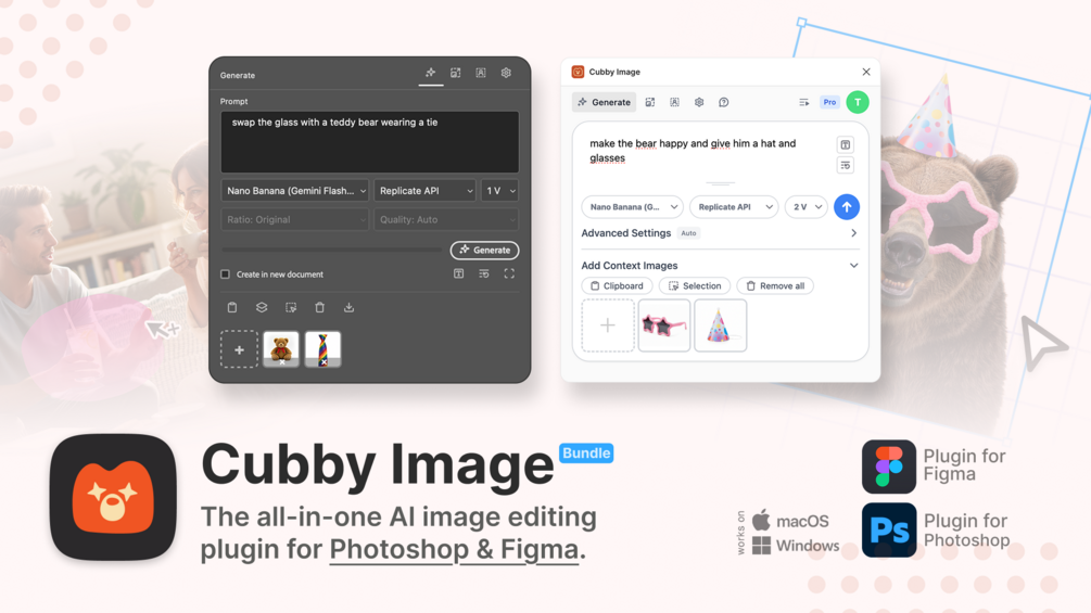 Finally bring state-of-the-art AI image models like Google Nano Banana Pro, FLUX.2, Seedream 4.5 and more directly into your favorite creative tools with Cubby Image for Photoshop & Figma 🐻